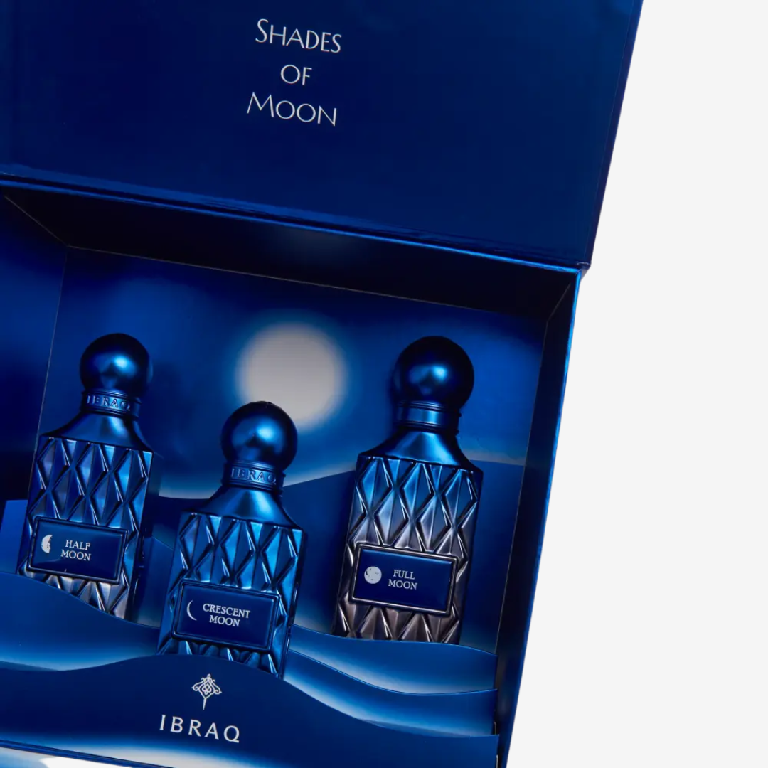 Moon Collection by IBRAQ is a three-piece fragrance set inspired by the phases of the moon. Each scent represents a different level of presence — from a soft beginning to a bold, radiant finish. Designed for those who appreciate depth, balance, and long-lasting original perfumes.