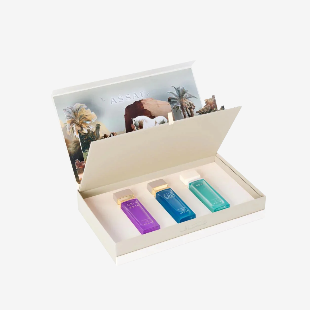 The Foundation Day Group by Assaf is a tribute to heritage, craftsmanship, and timeless elegance. This premium set includes three 100ml perfumes, each inspired by cultural depth, artistic storytelling, and refined taste. It’s the perfect collector’s set for fragrance lovers who appreciate sophistication and identity in every bottle.